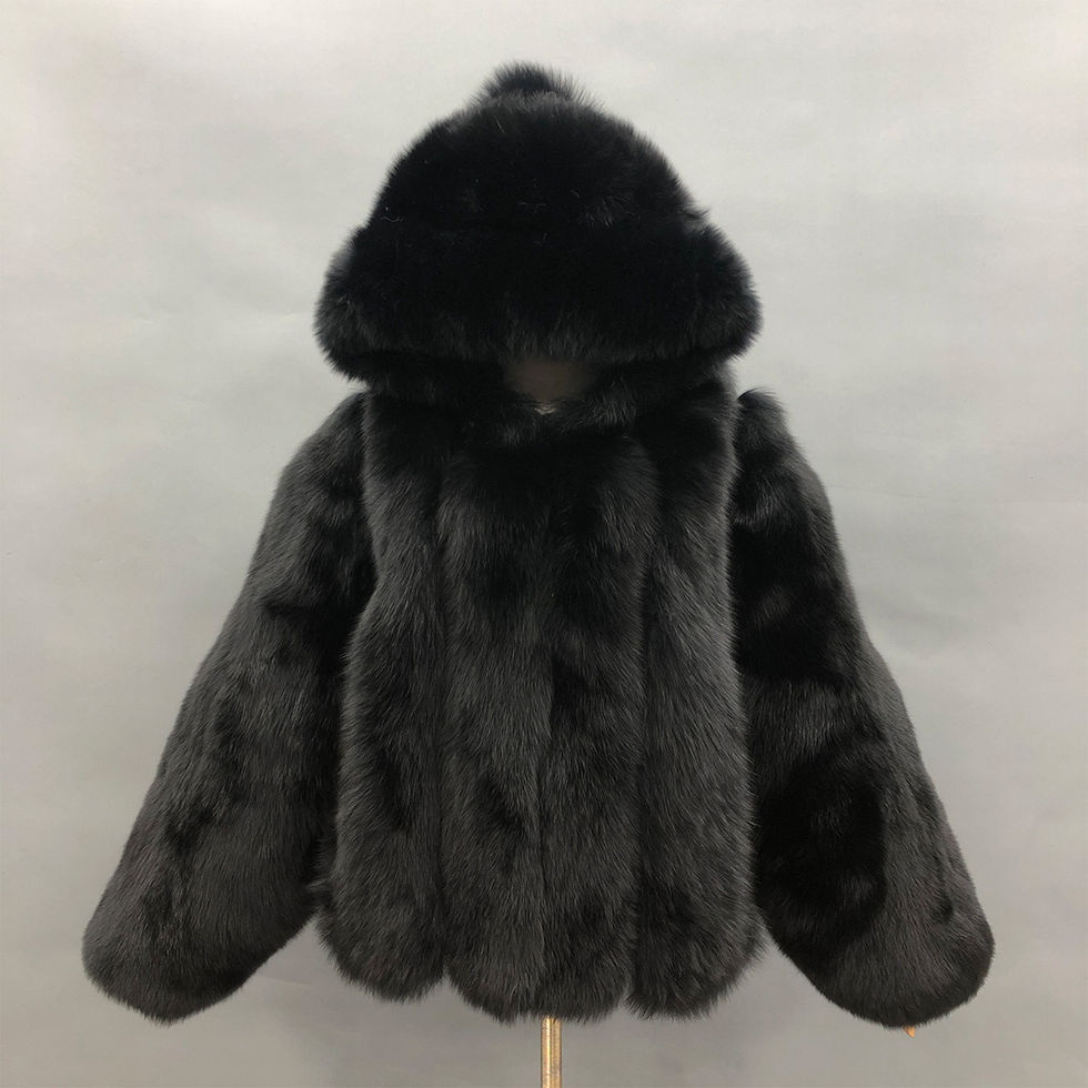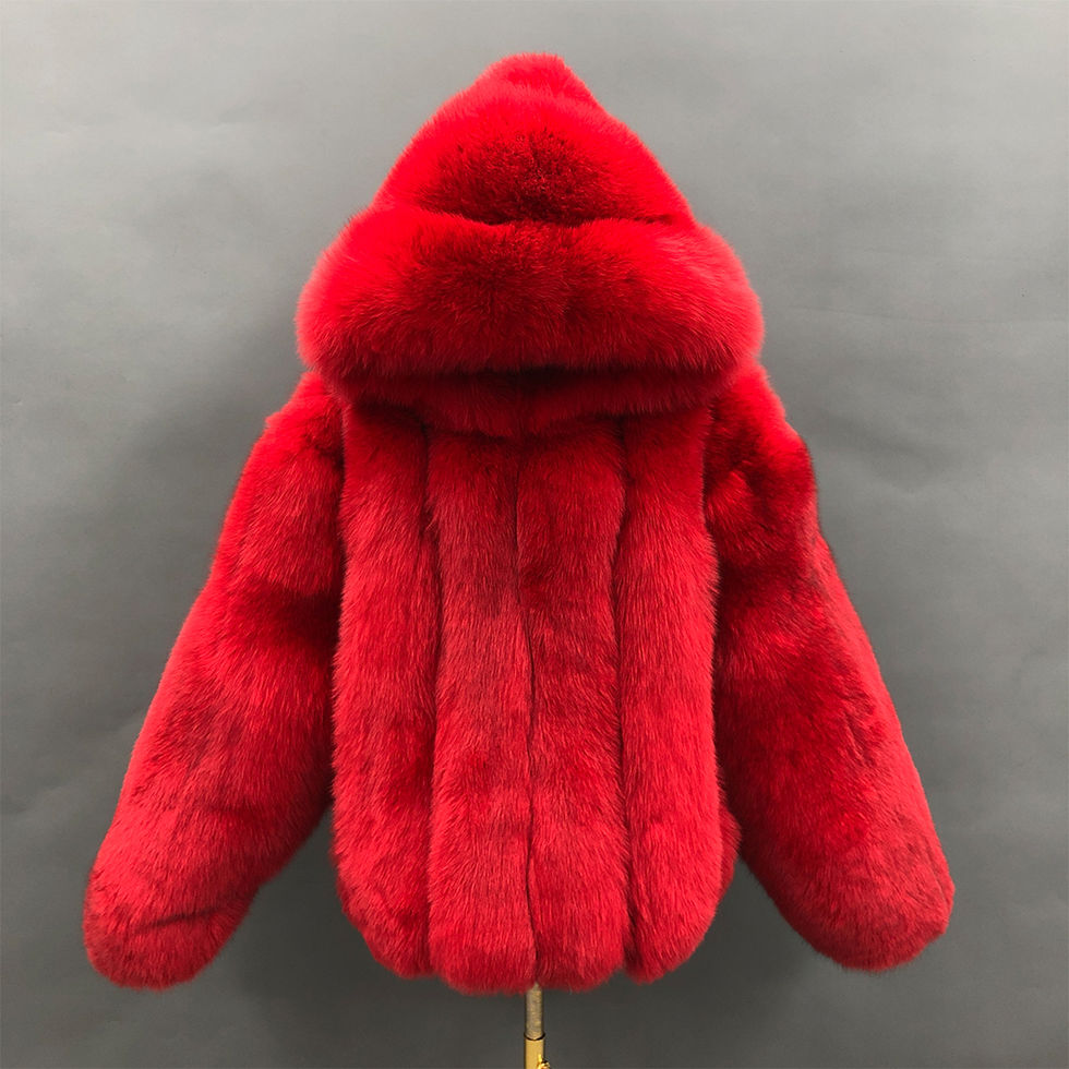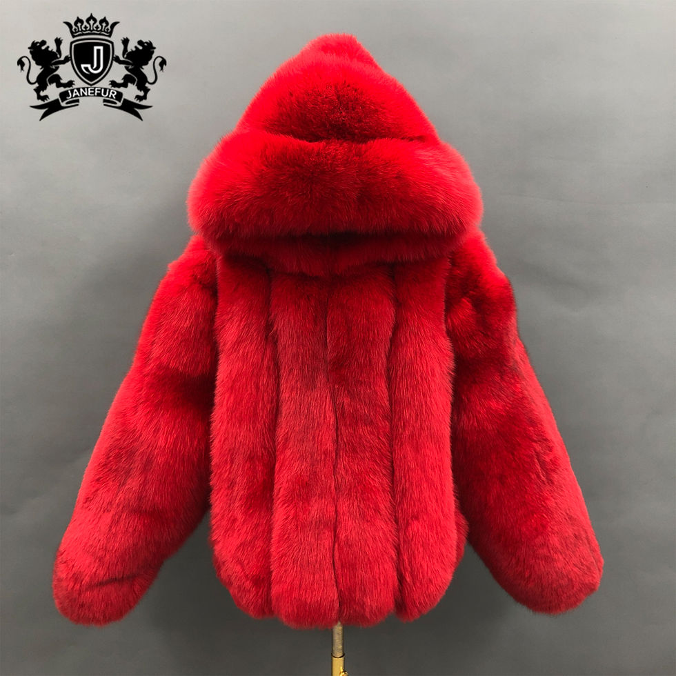Janefur Winter Fashion Hooded Fur Coat Winter Warm Thick Real Fox Fur Hooded Fu